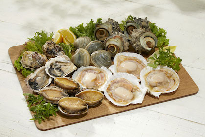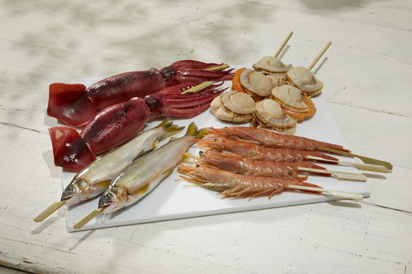 - ・海鮮セット:ホタテ4枚 ・海老4尾 ・イカ2杯
